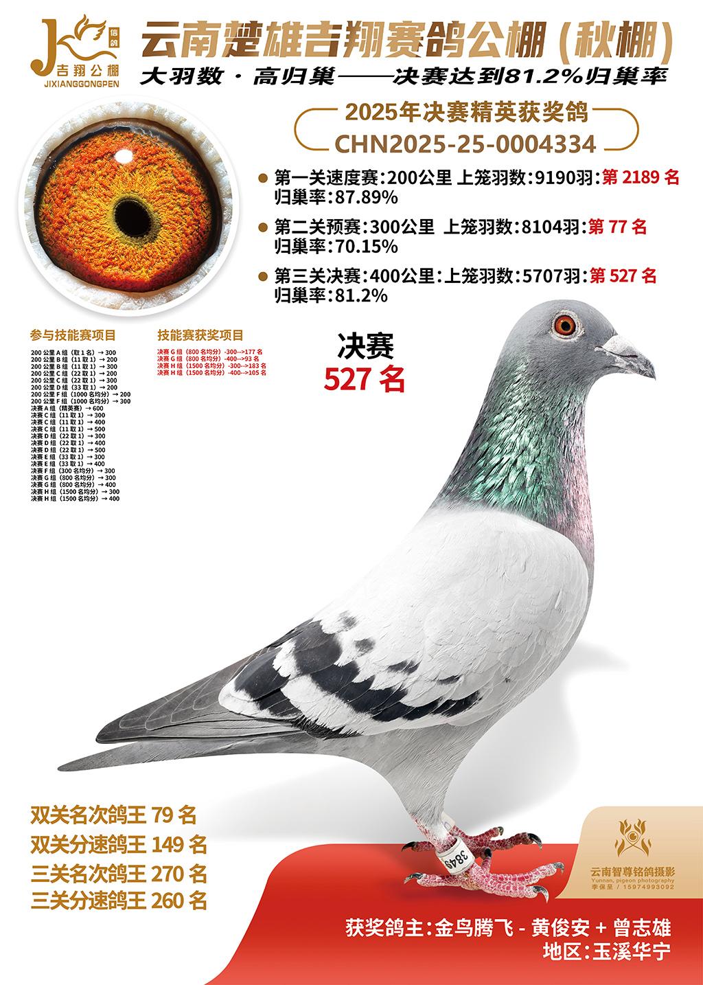 | 鸽主姓名 | 金鸟腾飞-黄俊安+曾志雄 |
