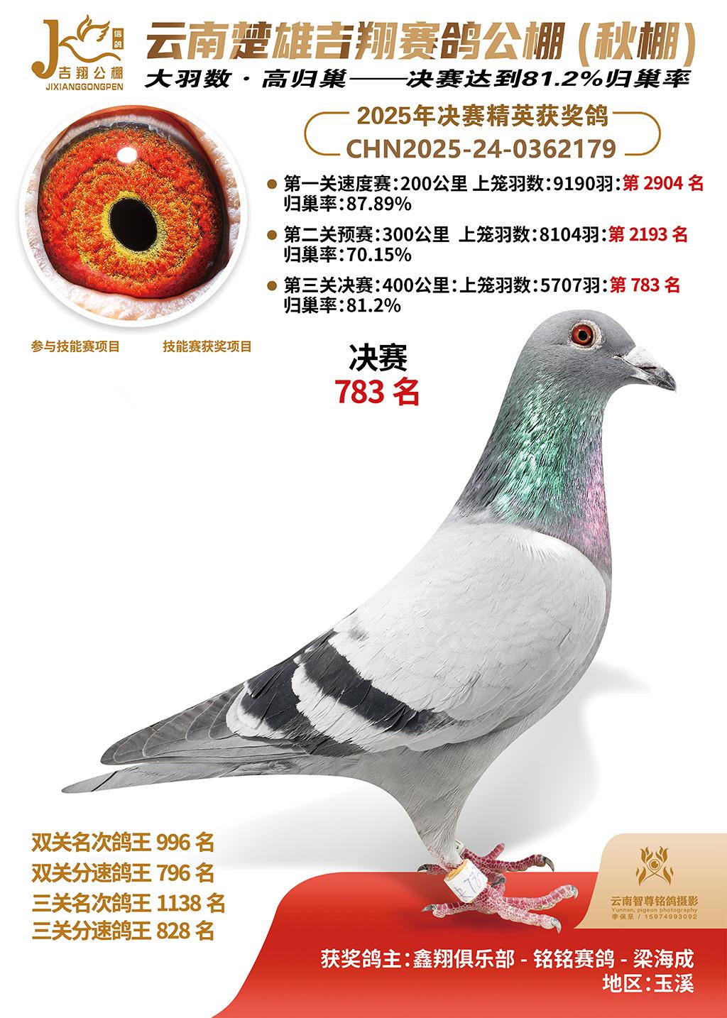 | 鸽主姓名 | 鑫翔俱乐部-铭铭赛鸽-梁海成 |