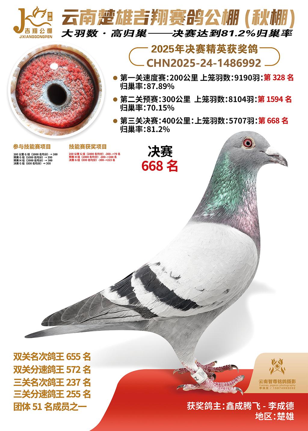 | 鸽主姓名 | 鑫成腾飞-李成德 |