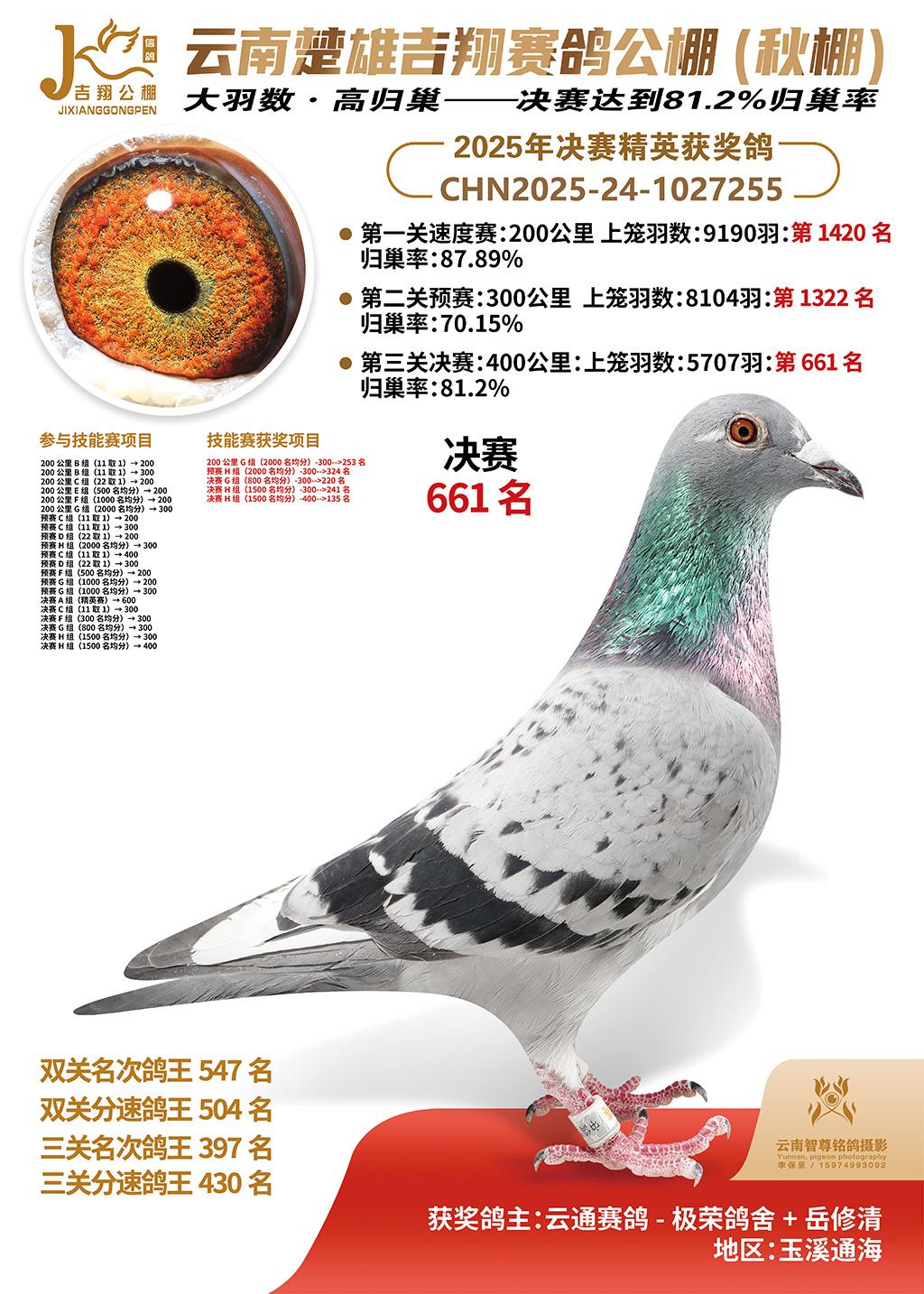 | 鸽主姓名 | 云通赛鸽-极荣鸽舍+岳修清 |