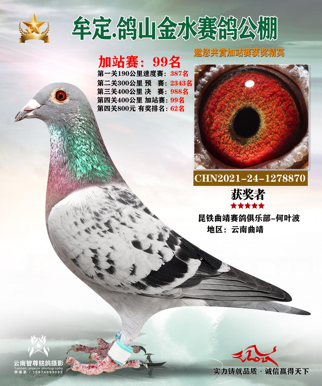 鸽主:昆铁曲靖赛鸽俱乐部-何叶波