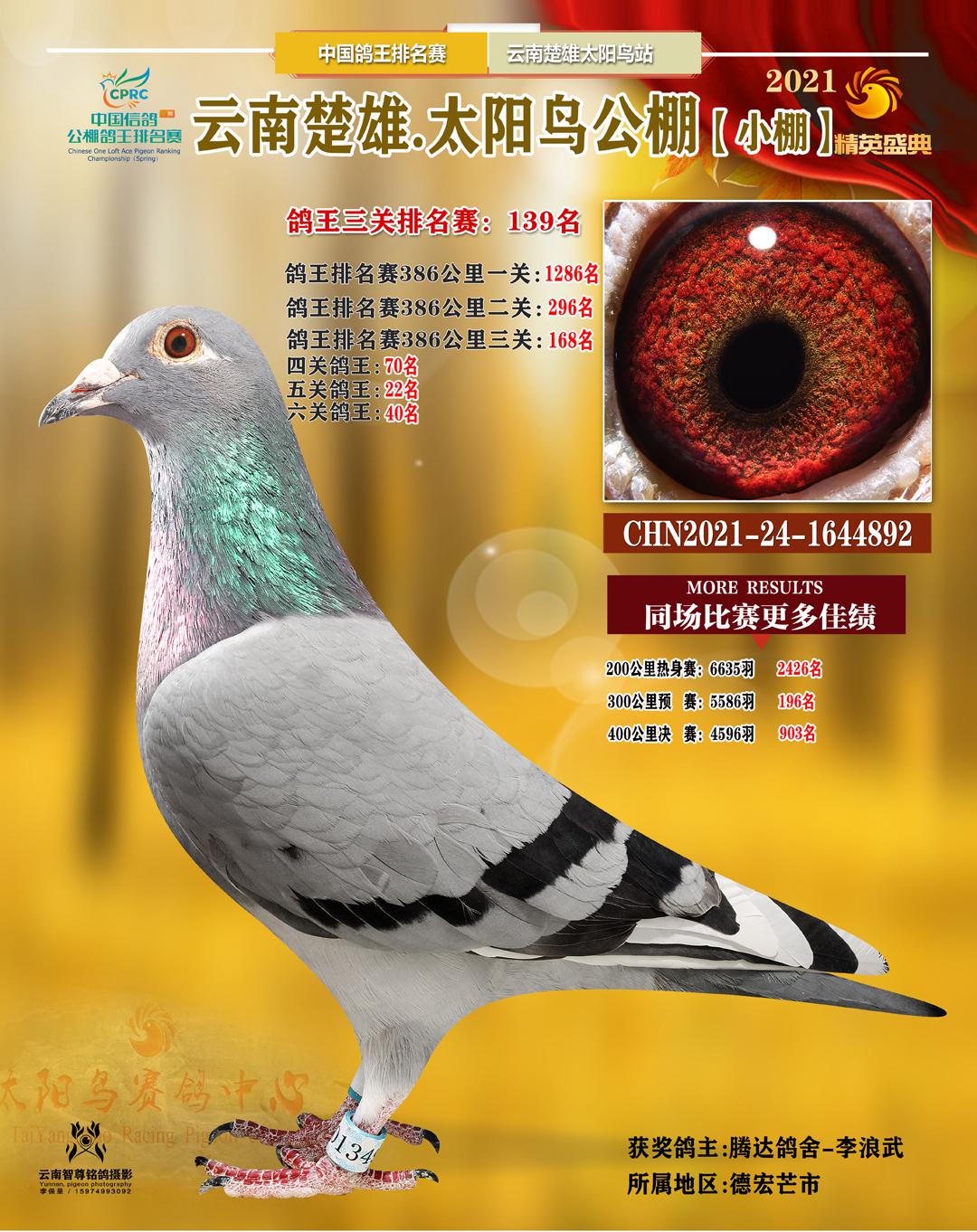 楚雄太阳鸟赛鸽中心秋棚小棚鸽王排位1-157位