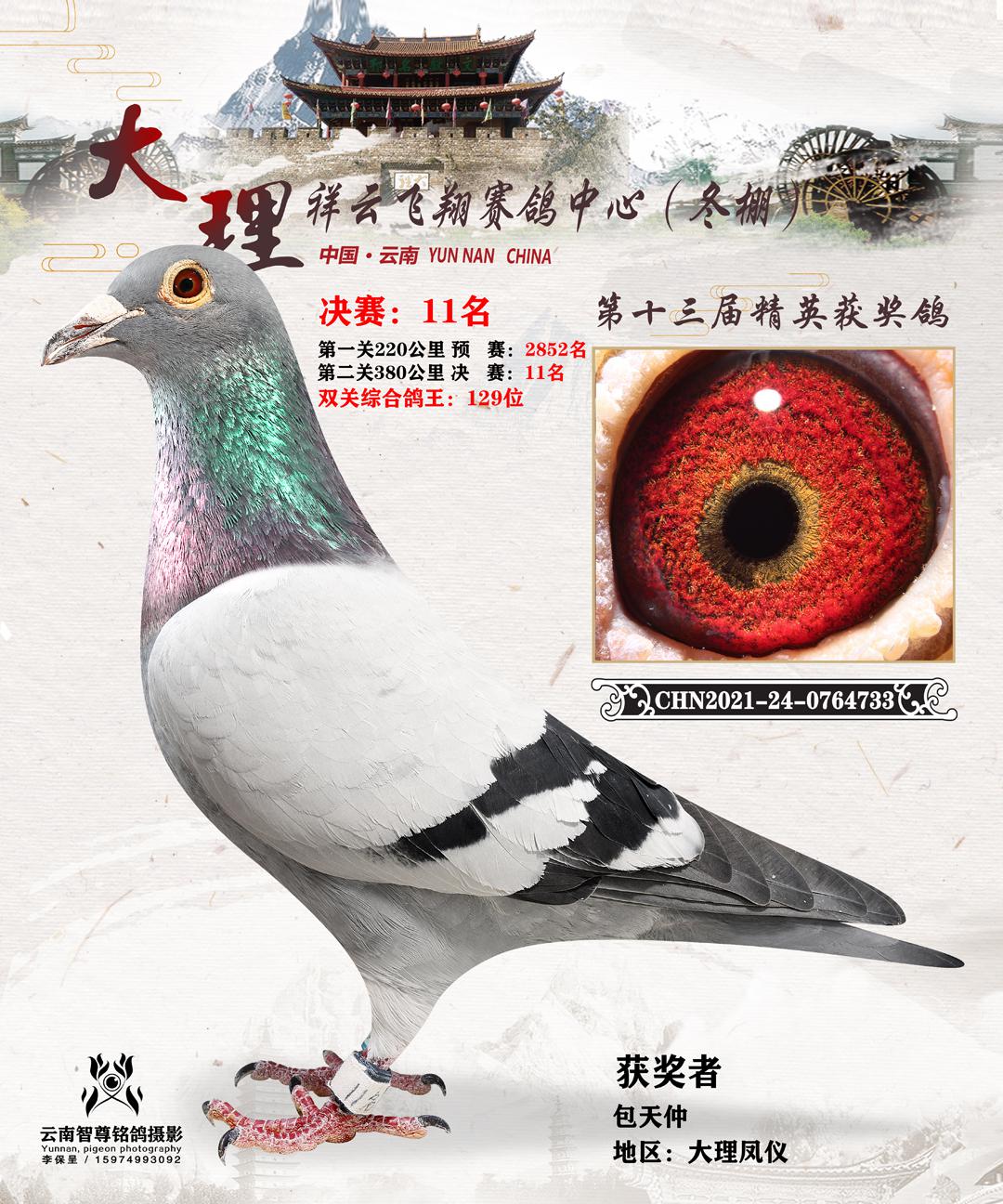 云南大理祥云飞翔赛鸽中心决赛获奖鸽