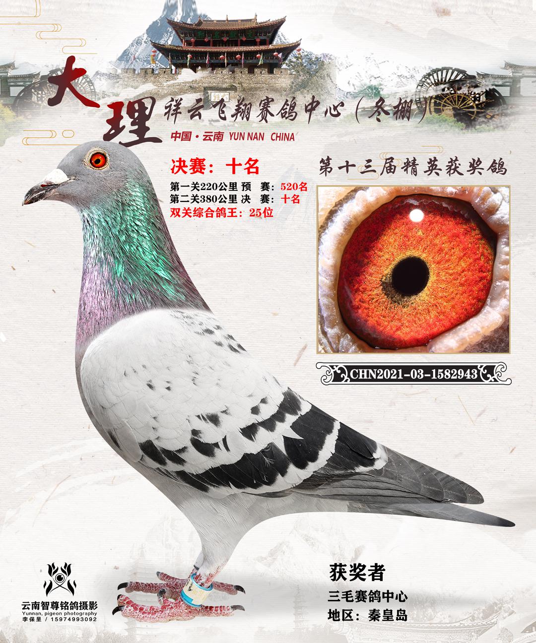 云南大理祥云飞翔赛鸽中心决赛获奖鸽