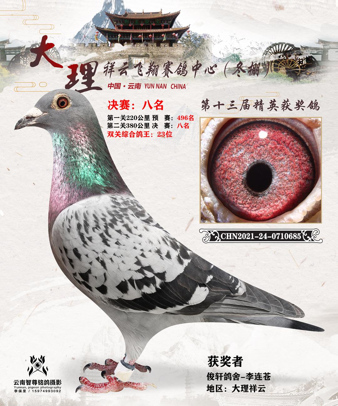 云南大理祥云飞翔赛鸽中心决赛获奖鸽
