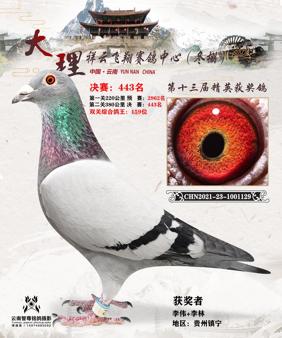 云南大理祥云飞翔赛鸽中心决赛获奖鸽