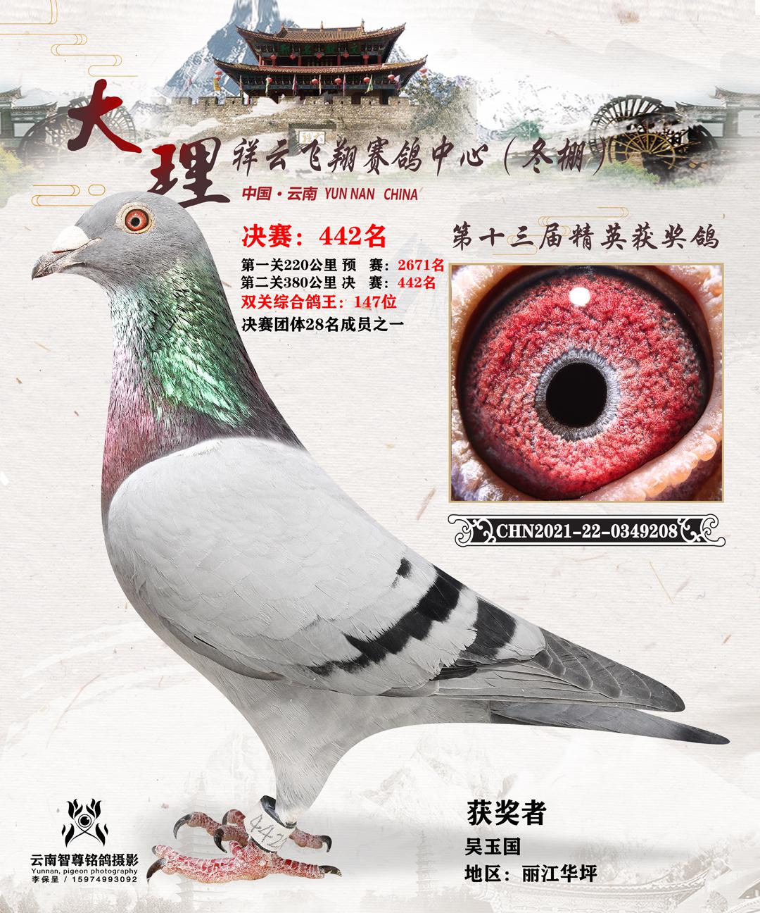 云南大理祥云飞翔赛鸽中心决赛获奖鸽