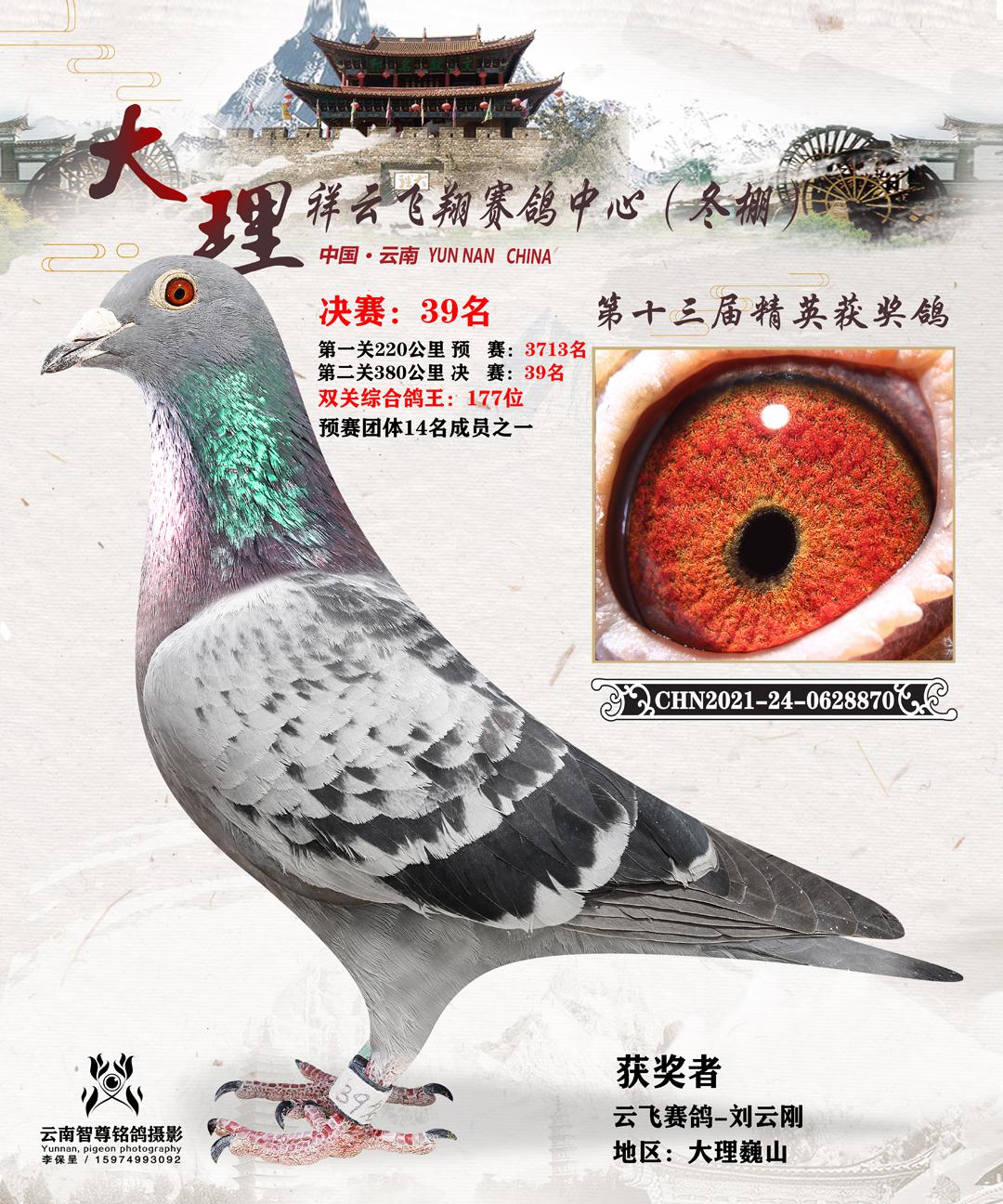 云南大理祥云飞翔赛鸽中心决赛获奖鸽
