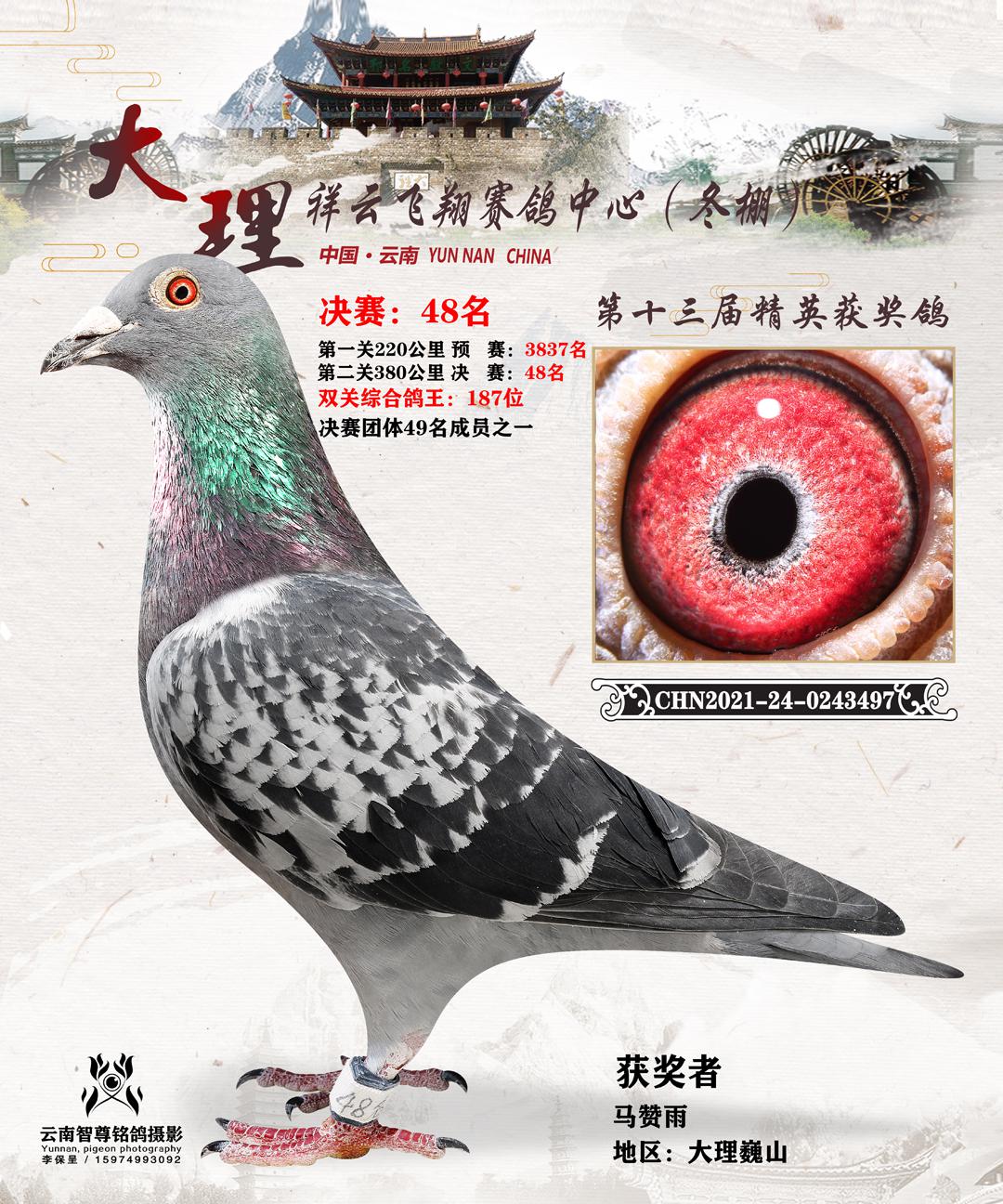 云南大理祥云飞翔赛鸽中心决赛获奖鸽