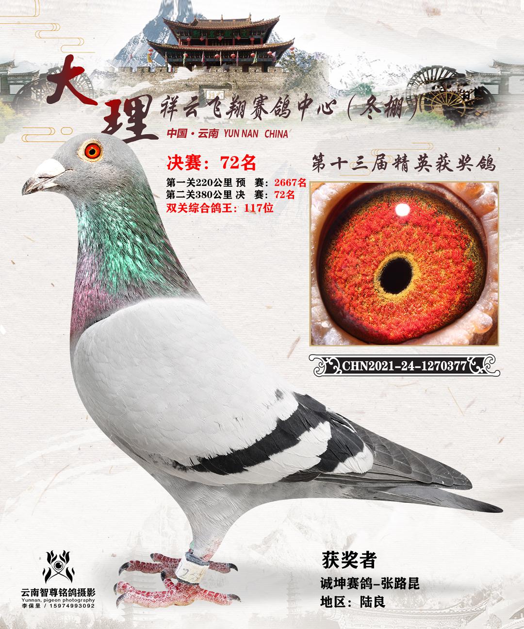 云南大理祥云飞翔赛鸽中心决赛获奖鸽