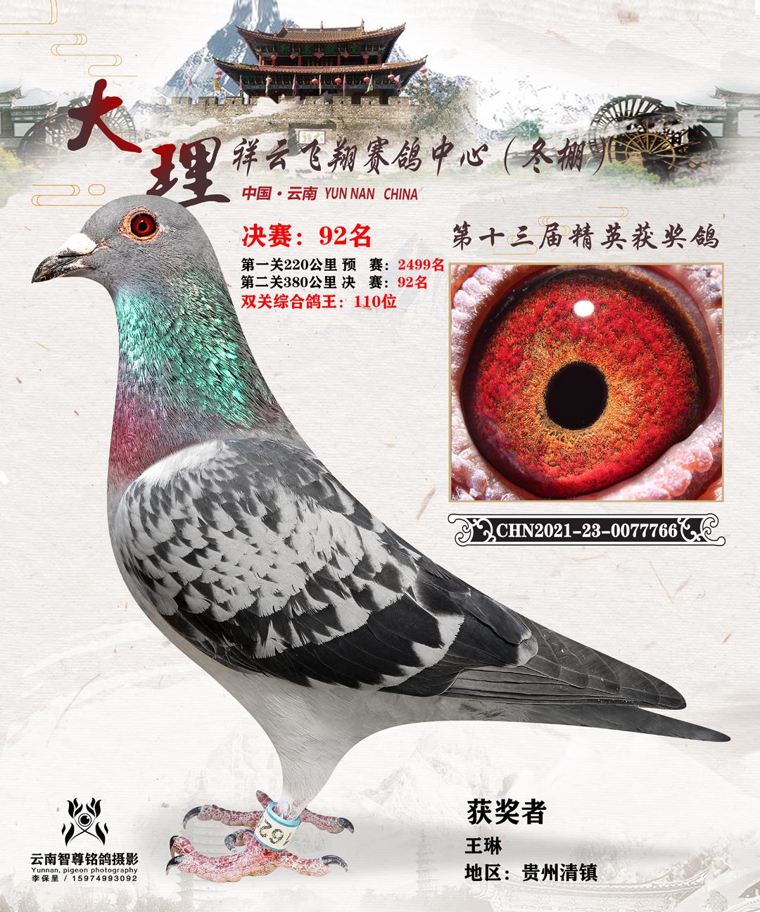 云南大理祥云飞翔赛鸽中心决赛获奖鸽