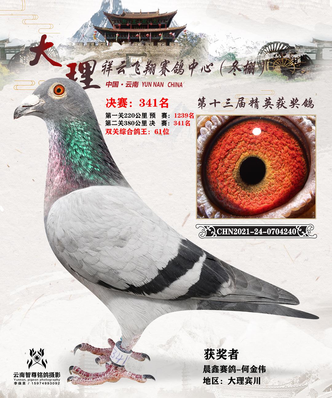 云南大理祥云飞翔赛鸽中心决赛获奖鸽