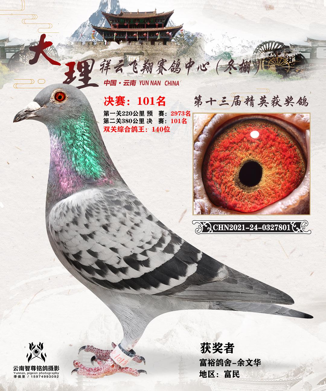 云南大理祥云飞翔赛鸽中心决赛获奖鸽