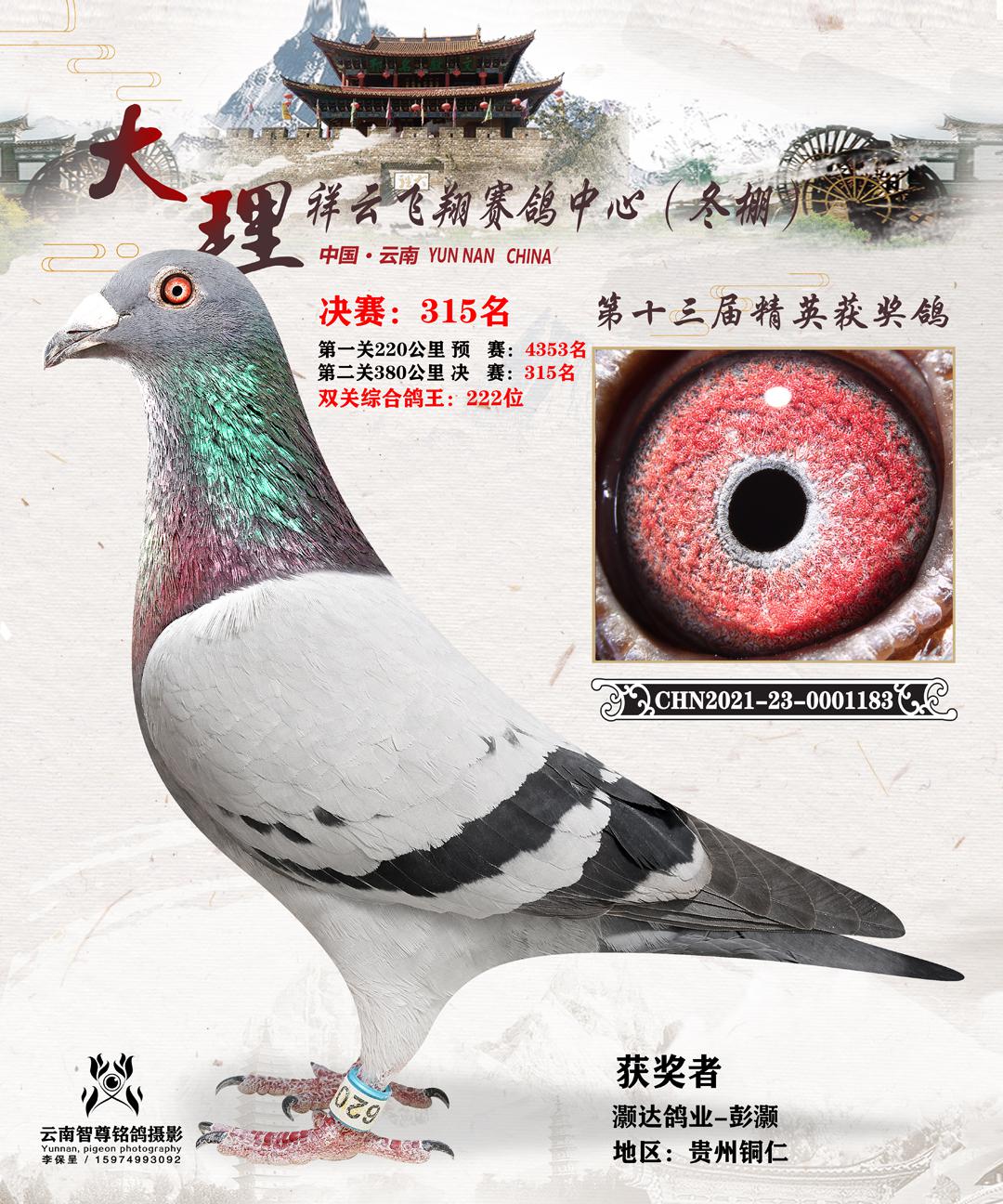 云南大理祥云飞翔赛鸽中心决赛获奖鸽