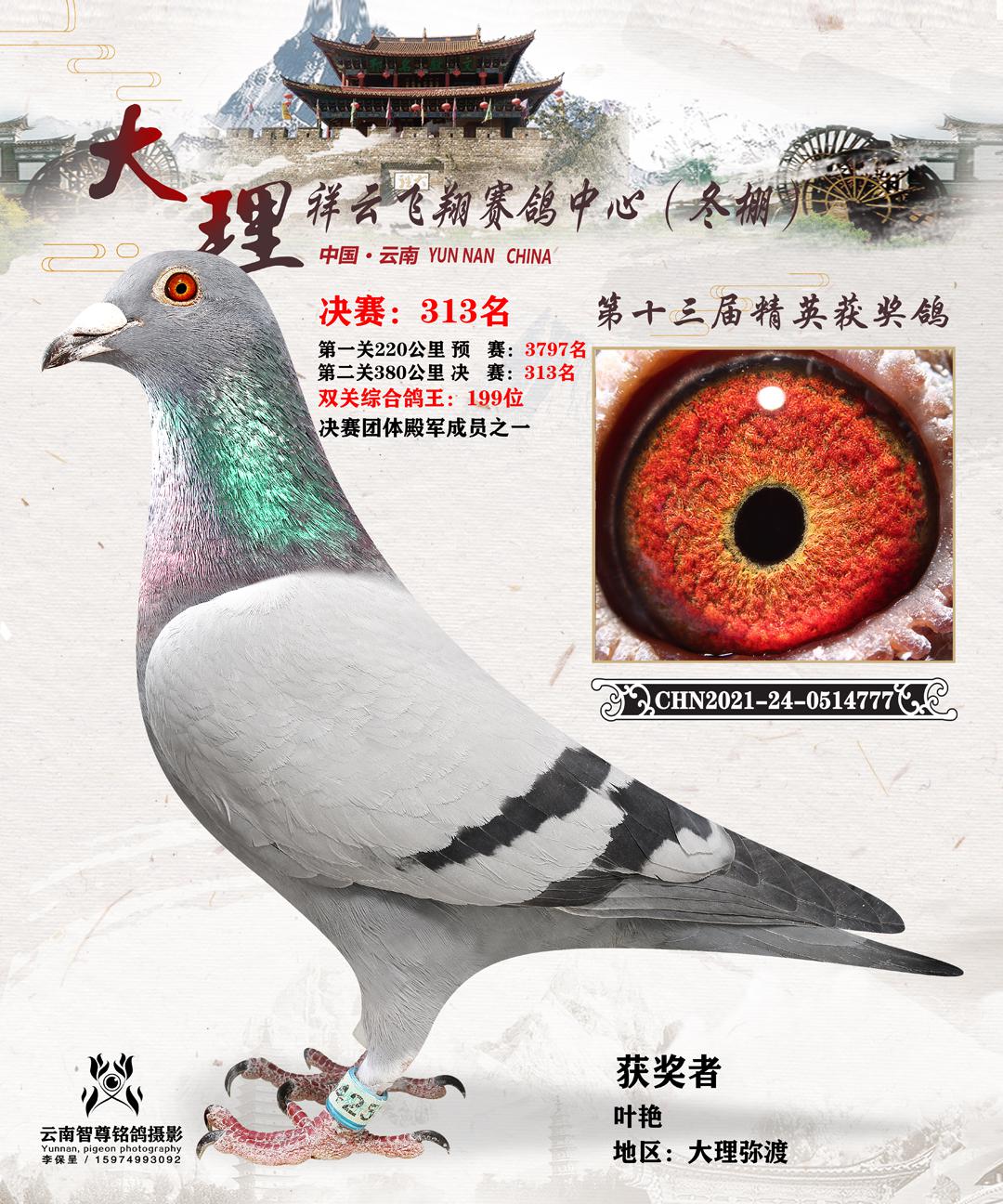 云南大理祥云飞翔赛鸽中心决赛获奖鸽