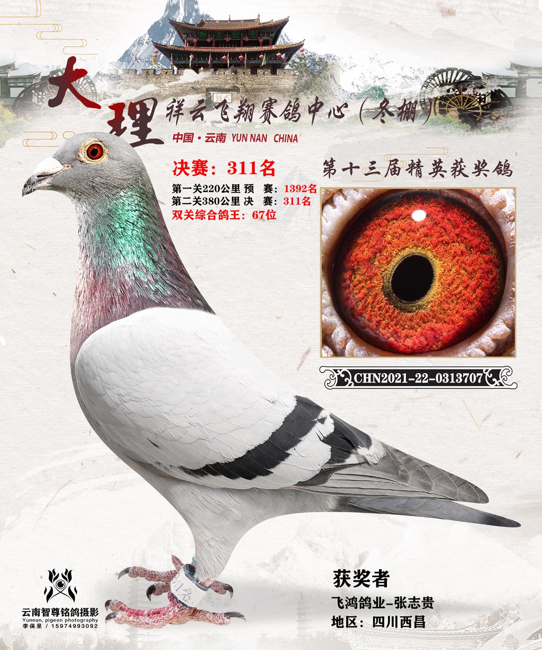 云南大理祥云飞翔赛鸽中心决赛获奖鸽