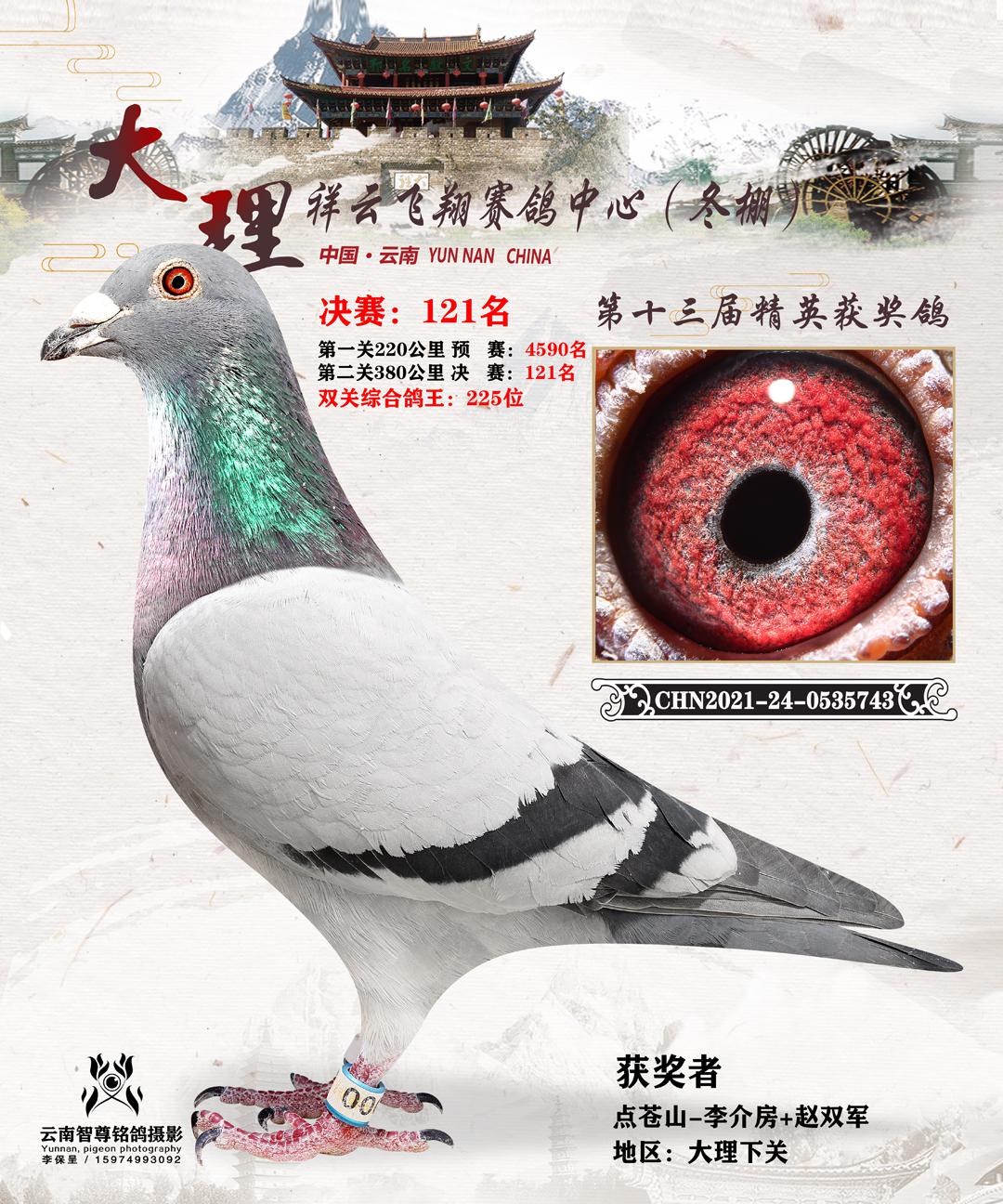 云南大理祥云飞翔赛鸽中心决赛获奖鸽