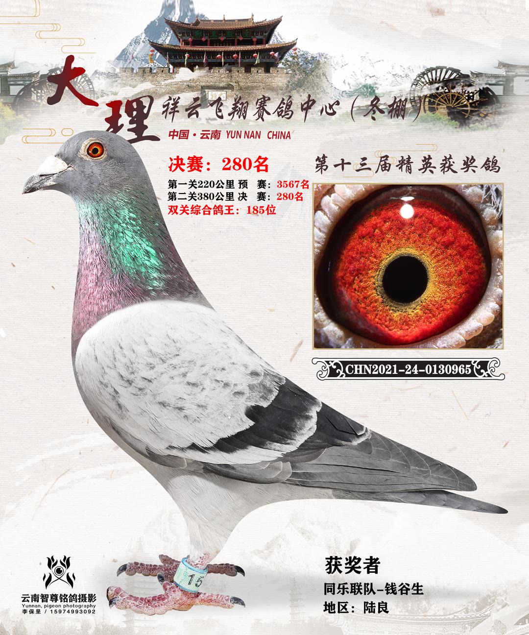 云南大理祥云飞翔赛鸽中心决赛获奖鸽