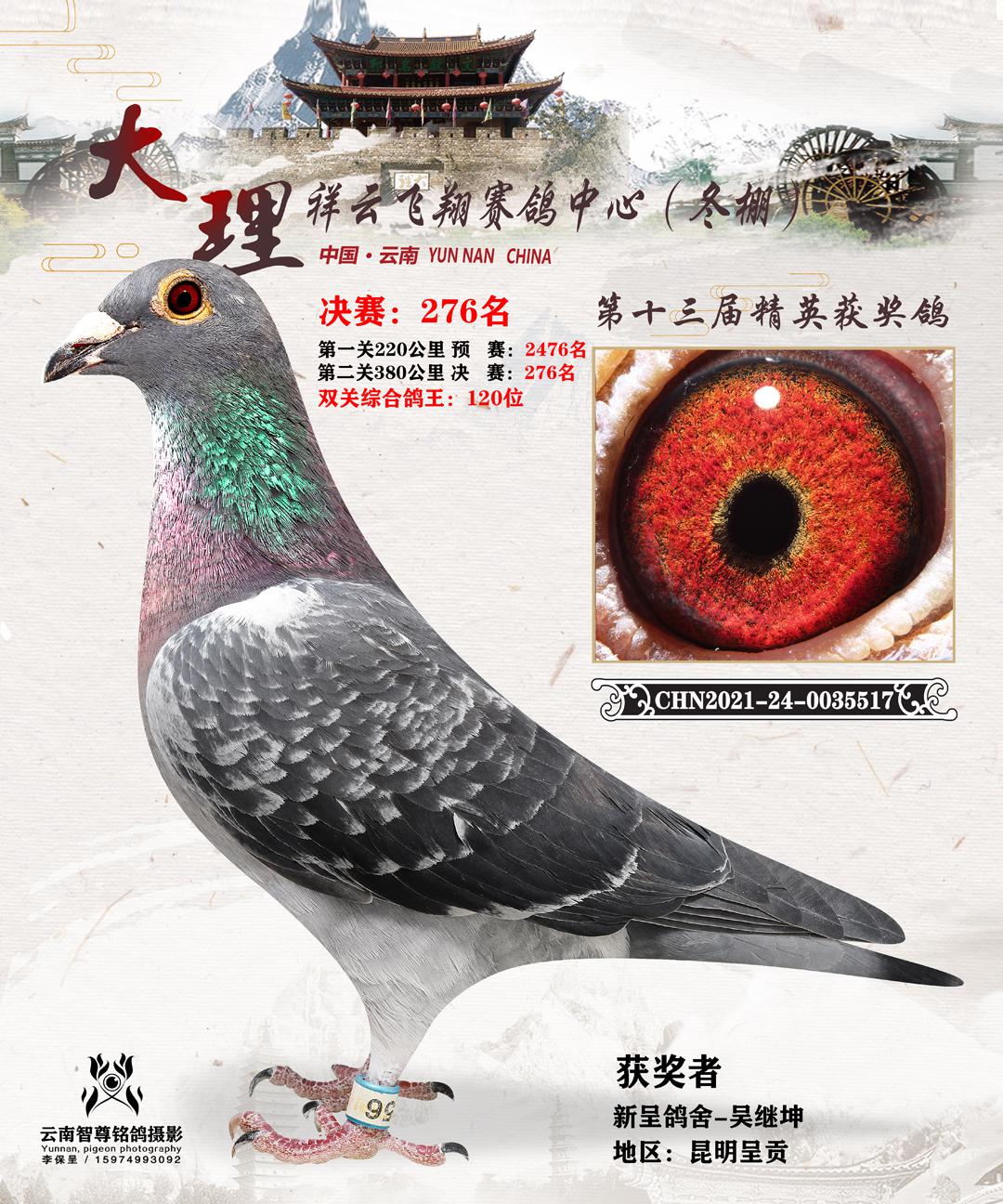 云南大理祥云飞翔赛鸽中心决赛获奖鸽