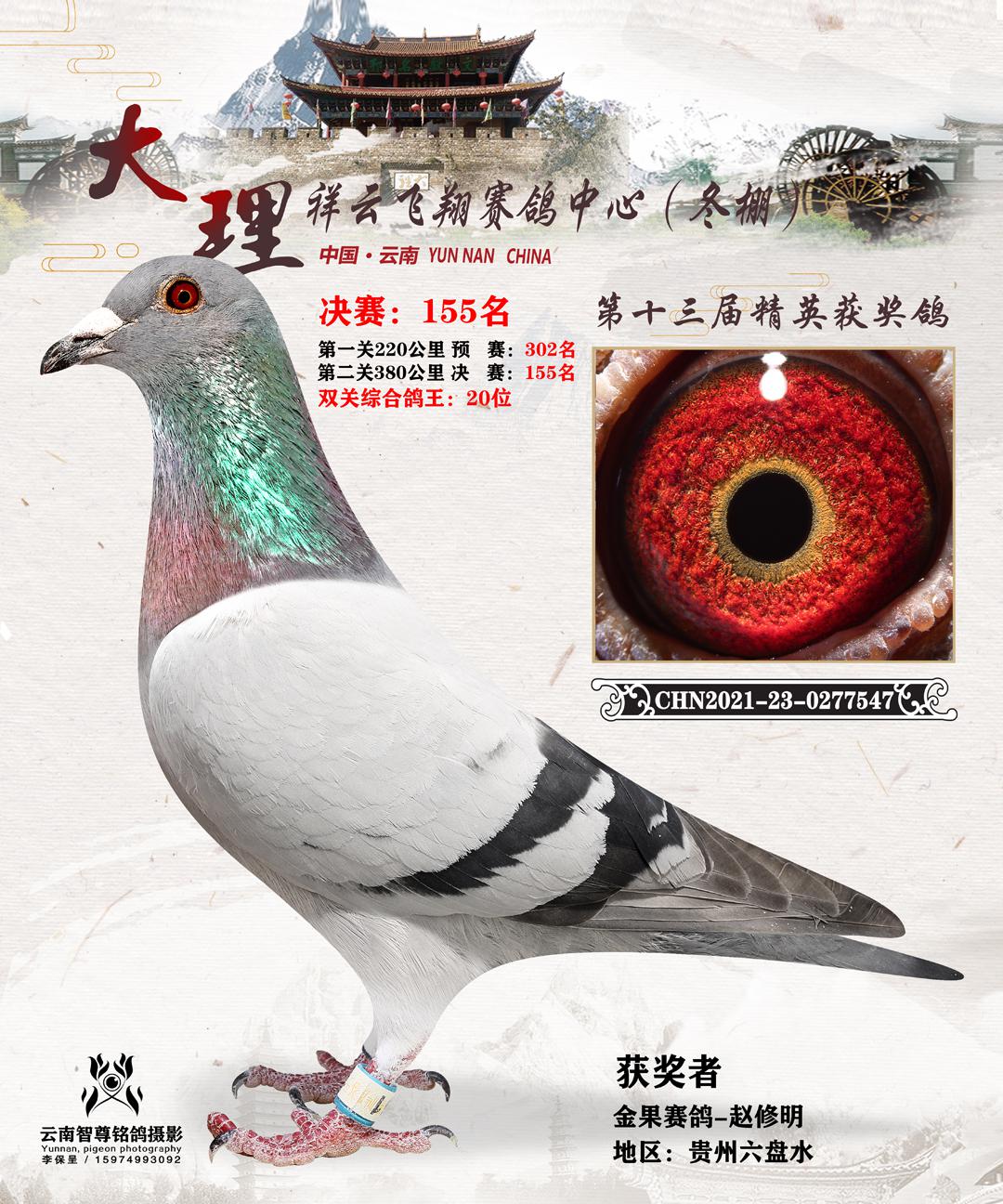 云南大理祥云飞翔赛鸽中心决赛获奖鸽