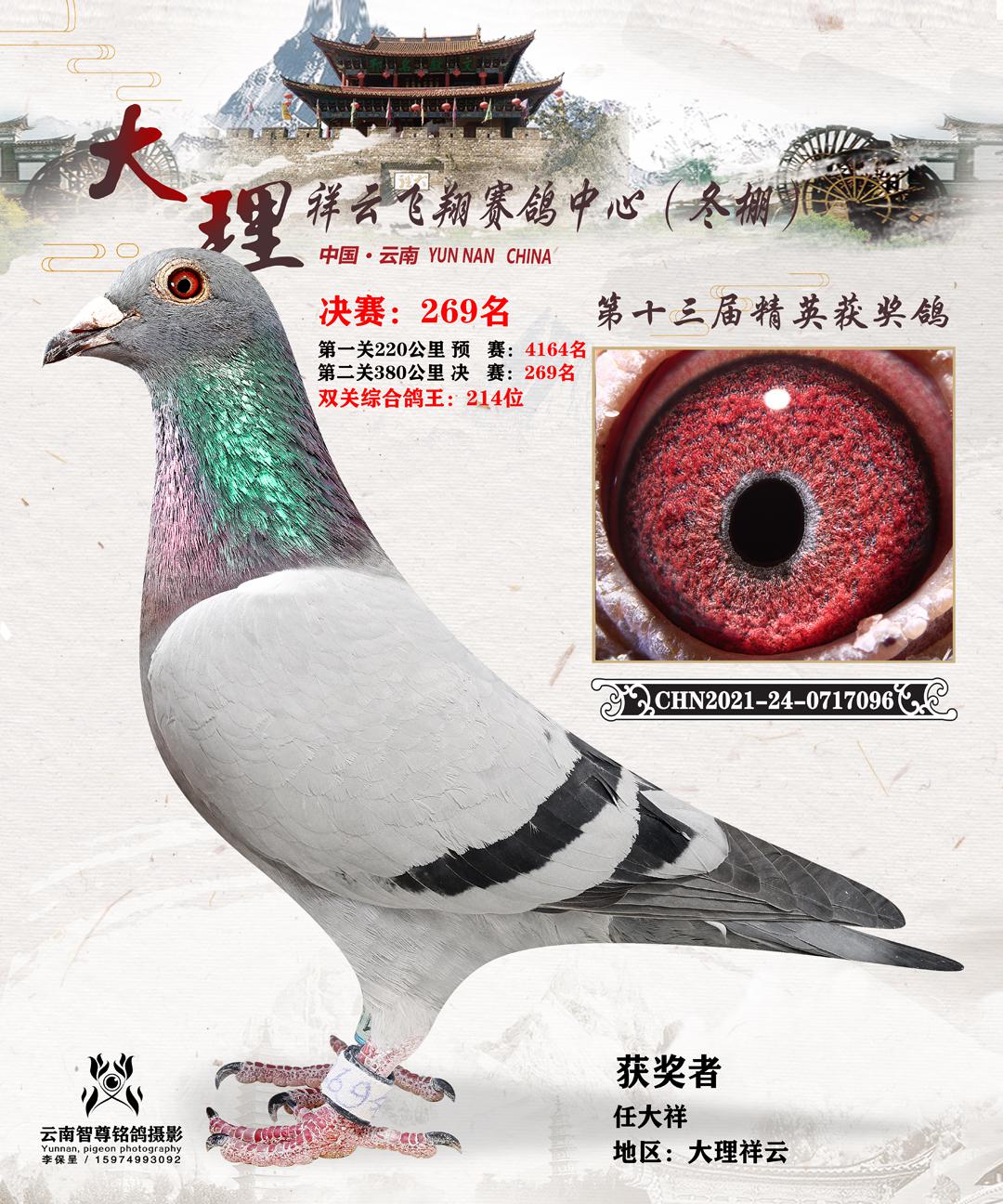 云南大理祥云飞翔赛鸽中心决赛获奖鸽