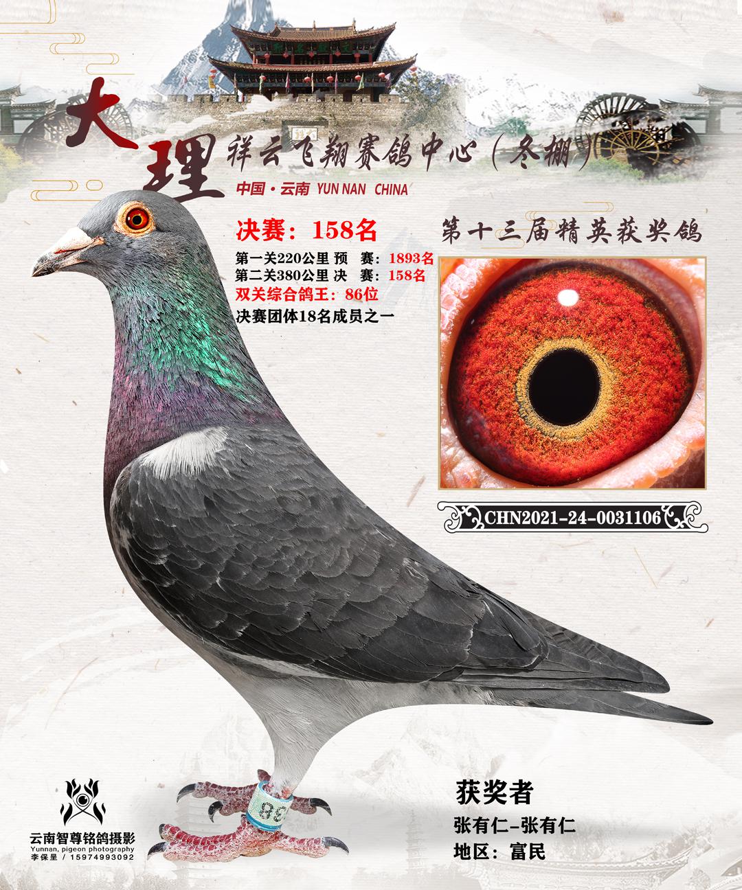 云南大理祥云飞翔赛鸽中心决赛获奖鸽