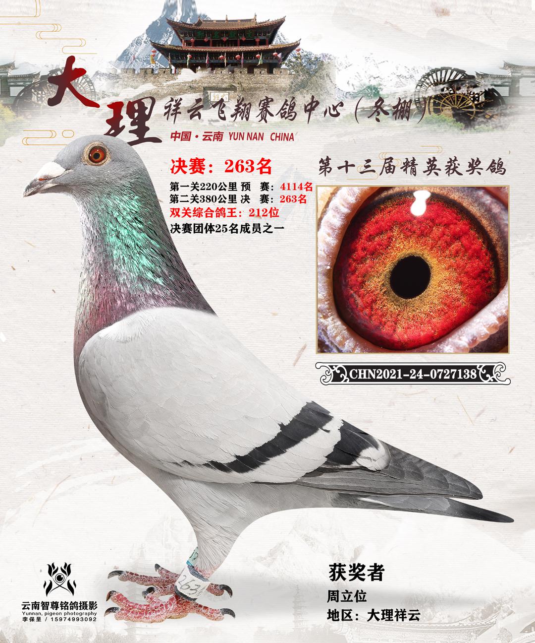 云南大理祥云飞翔赛鸽中心决赛获奖鸽