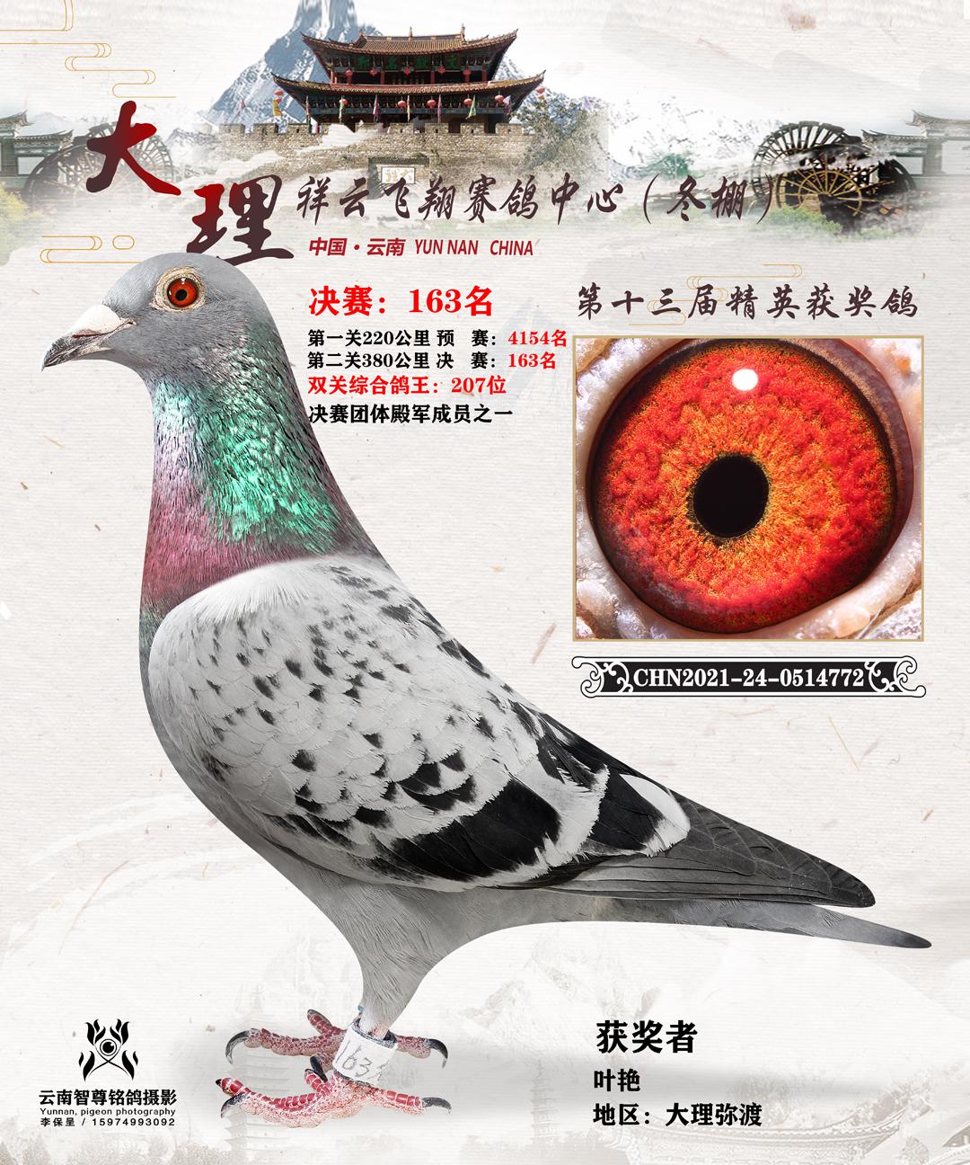 云南大理祥云飞翔赛鸽中心决赛获奖鸽