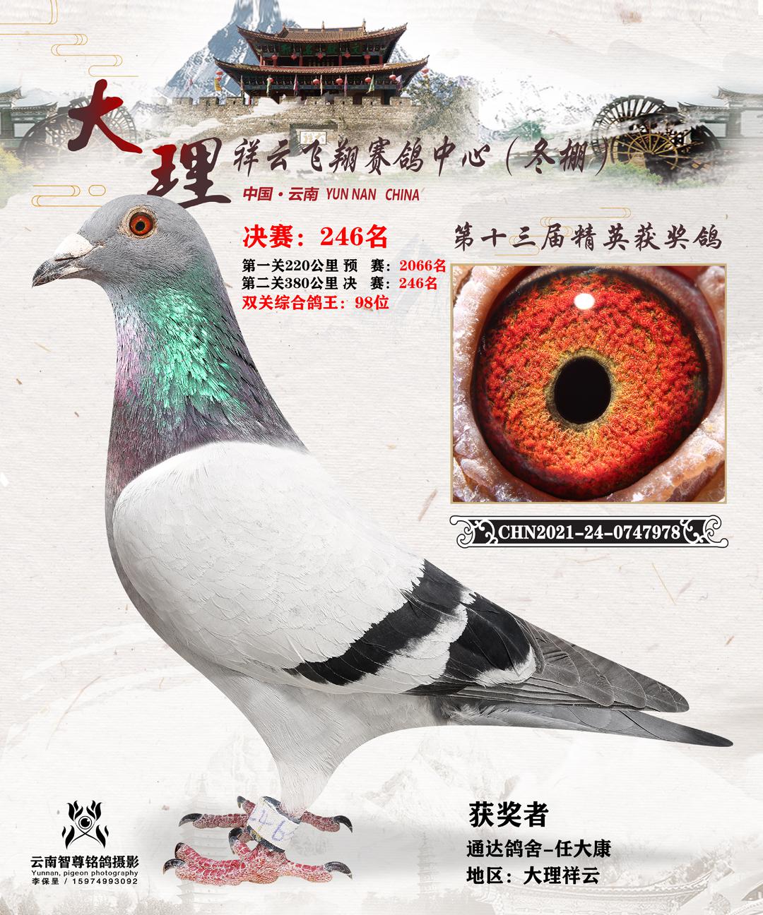 云南大理祥云飞翔赛鸽中心决赛获奖鸽