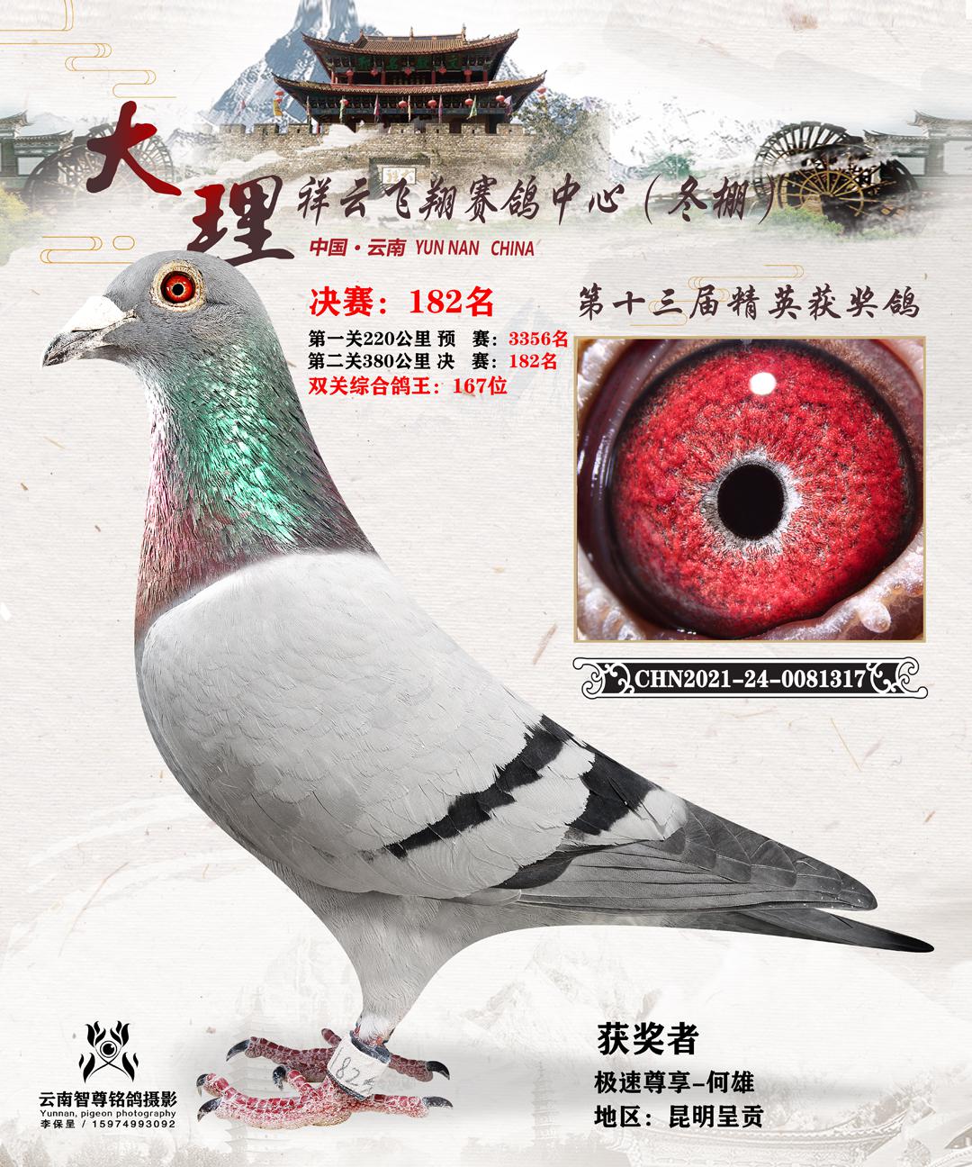 云南大理祥云飞翔赛鸽中心决赛获奖鸽