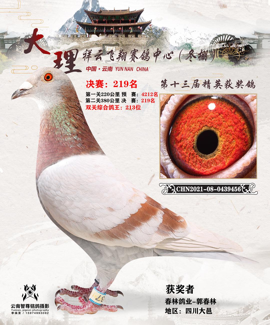云南大理祥云飞翔赛鸽中心决赛获奖鸽
