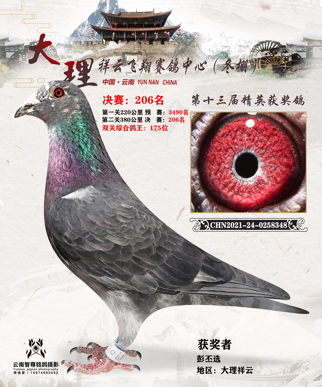 云南大理祥云飞翔赛鸽中心决赛获奖鸽