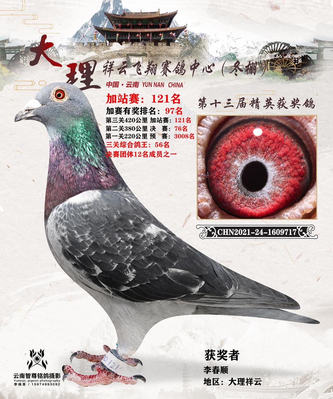 云南大理祥云飞翔赛鸽中心加站赛1-124名