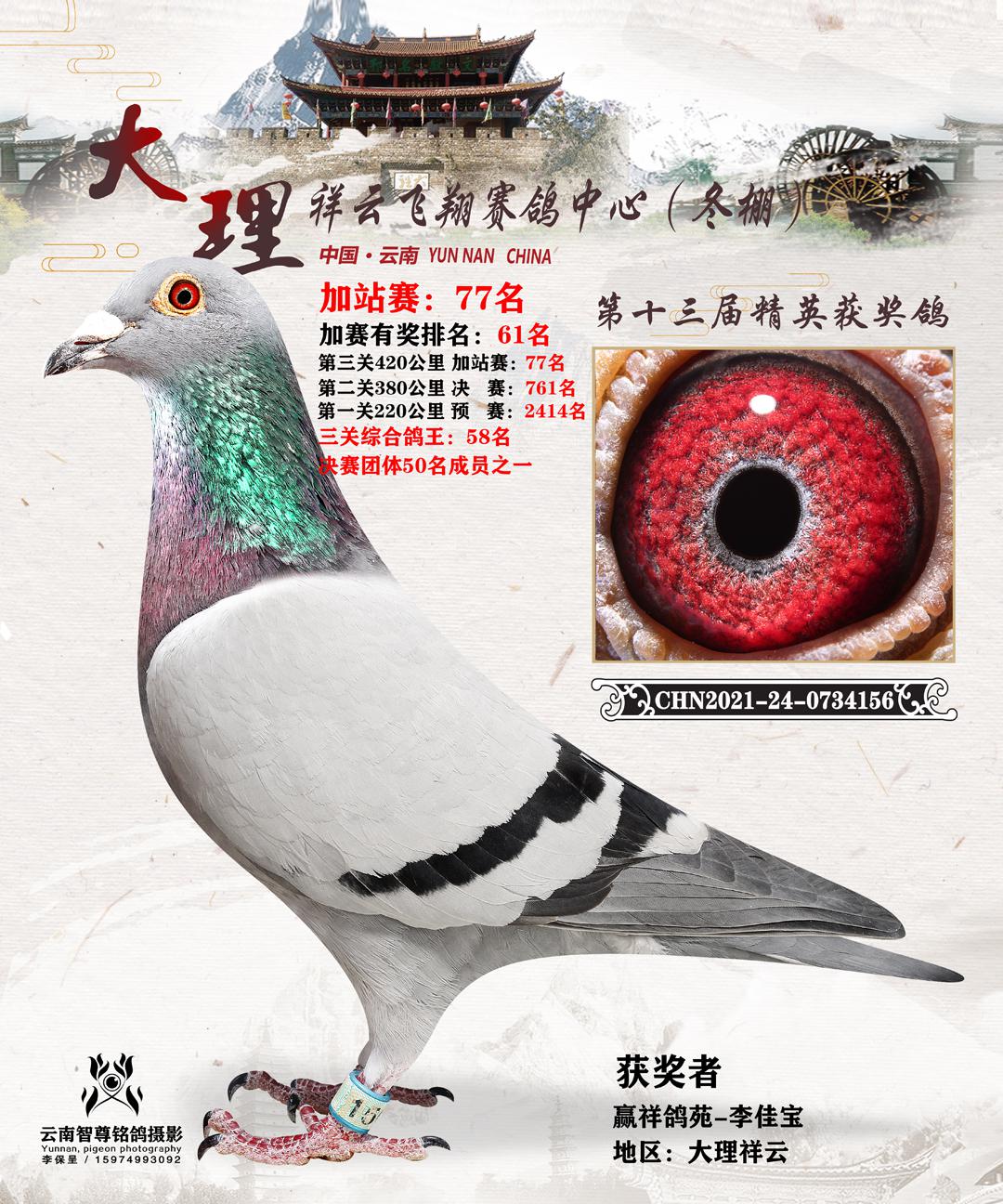云南大理祥云飞翔赛鸽中心加站赛1-124名