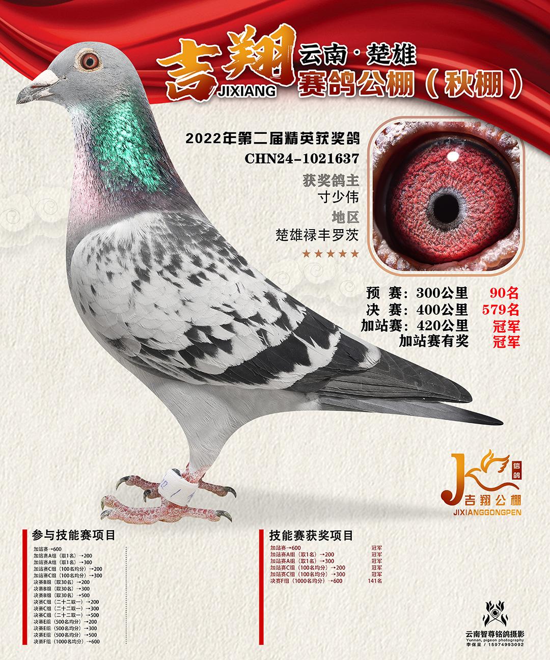 云南楚雄吉祥公棚(秋棚)2022年第二届加站赛获奖鸽照片