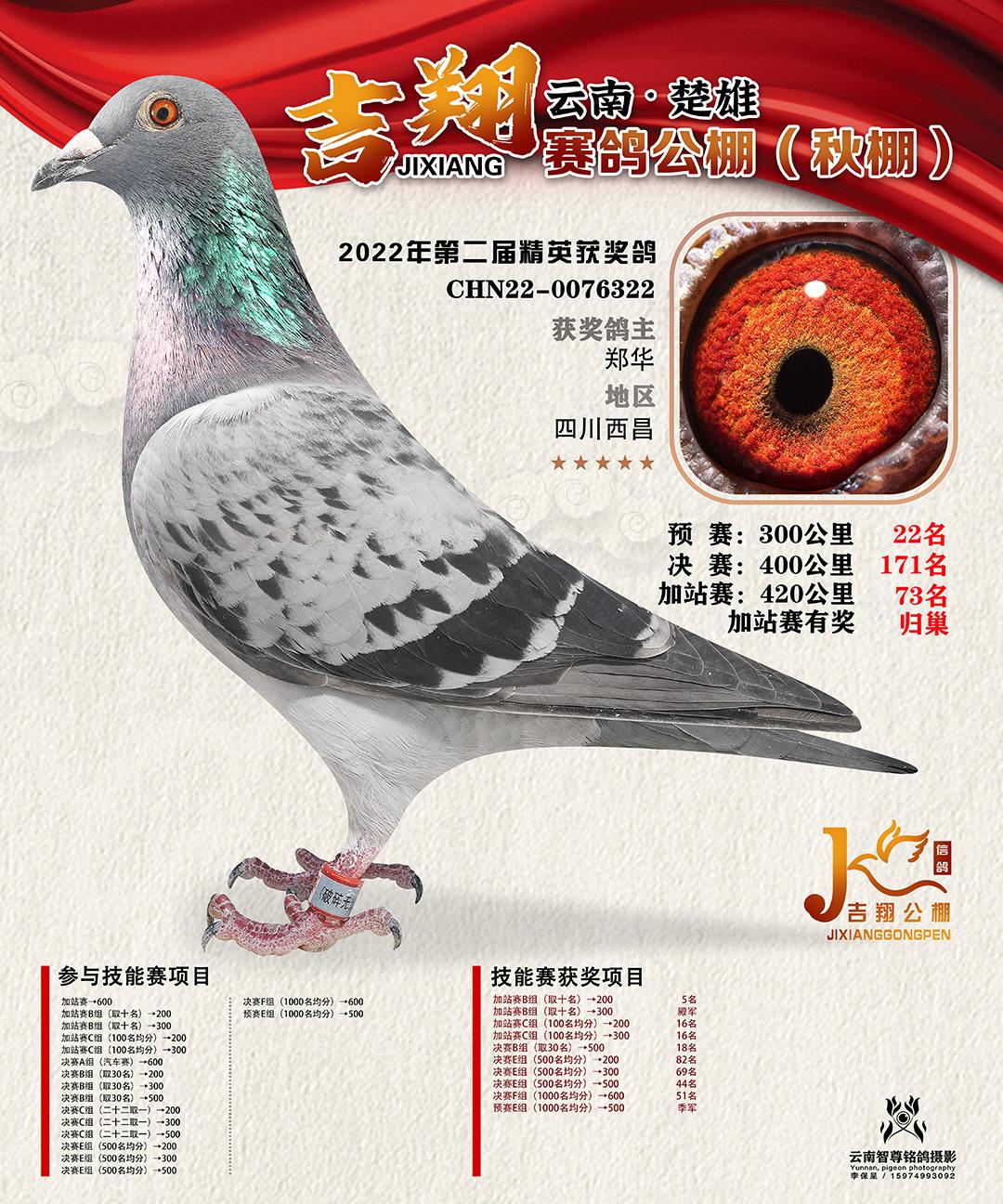 云南楚雄吉祥公棚(秋棚)2022年第二届加站赛获奖鸽照片