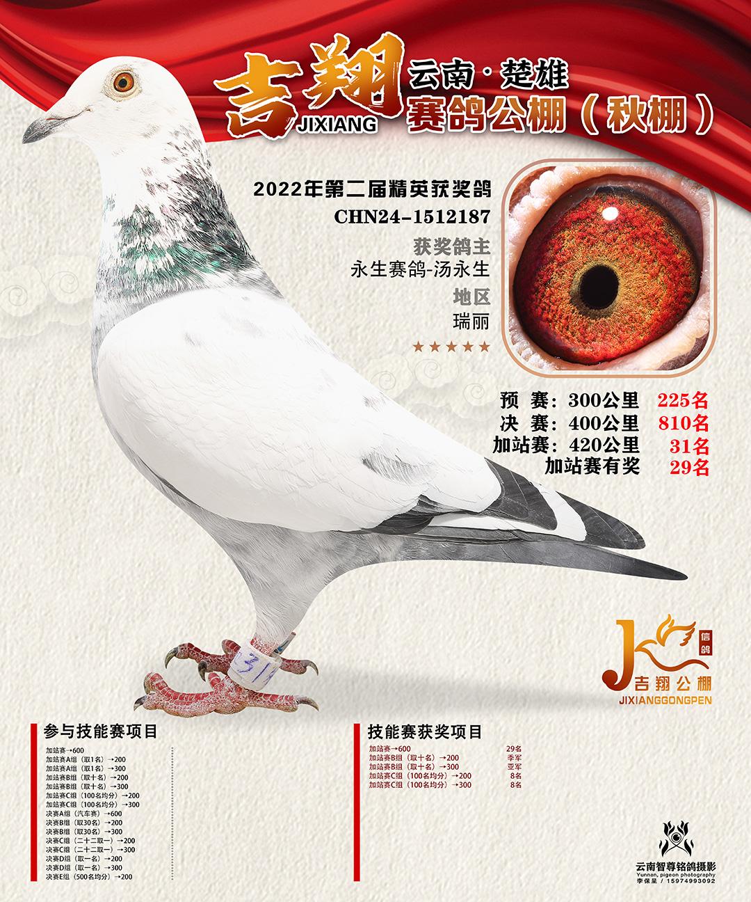 云南楚雄吉祥公棚(秋棚)2022年第二届加站赛获奖鸽照片