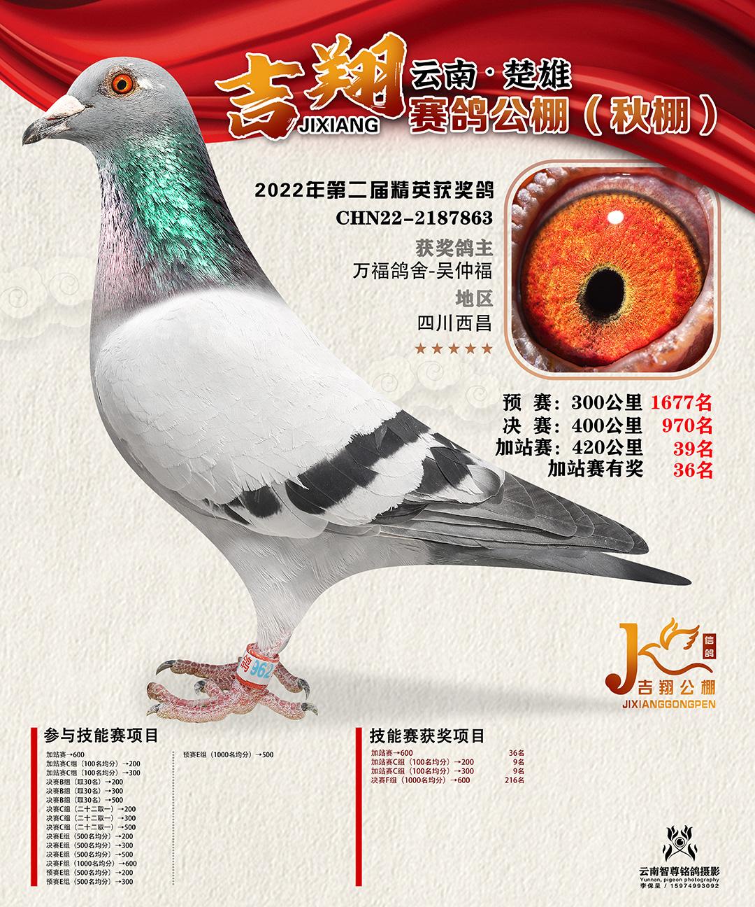 云南楚雄吉祥公棚(秋棚)2022年第二届加站赛获奖鸽照片