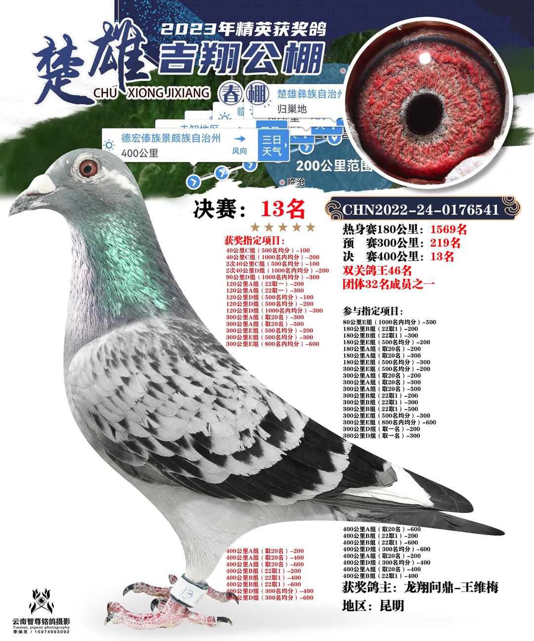 云南楚雄吉翔养殖有限公司(春棚) 2023年(第二届)400公里决赛获奖鸽