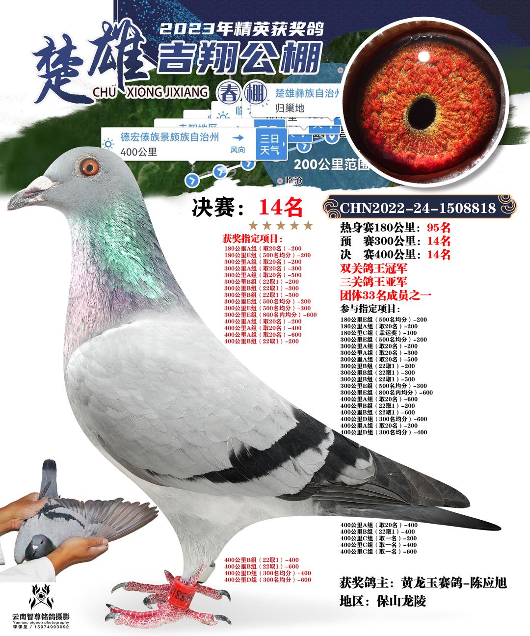 云南楚雄吉翔养殖有限公司(春棚) 2023年(第二届)400公里决赛获奖鸽
