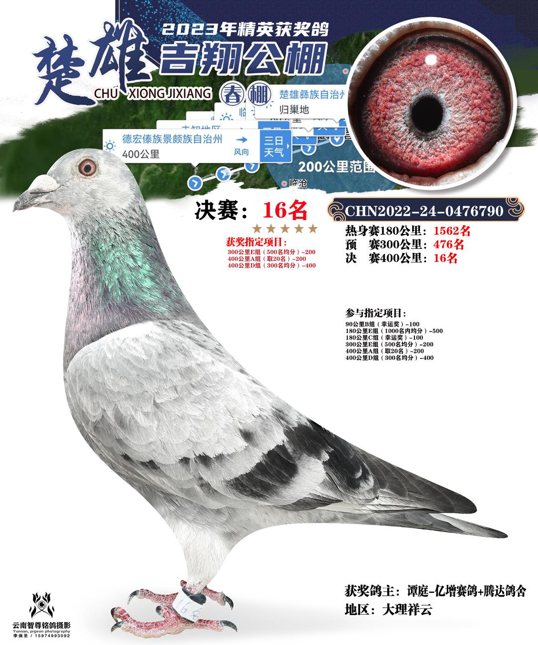 云南楚雄吉翔养殖有限公司(春棚) 2023年(第二届)400公里决赛获奖鸽