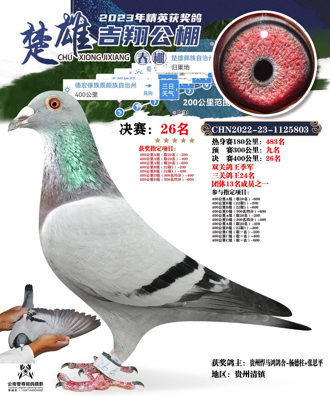 云南楚雄吉翔养殖有限公司(春棚) 2023年(第二届)400公里决赛获奖鸽