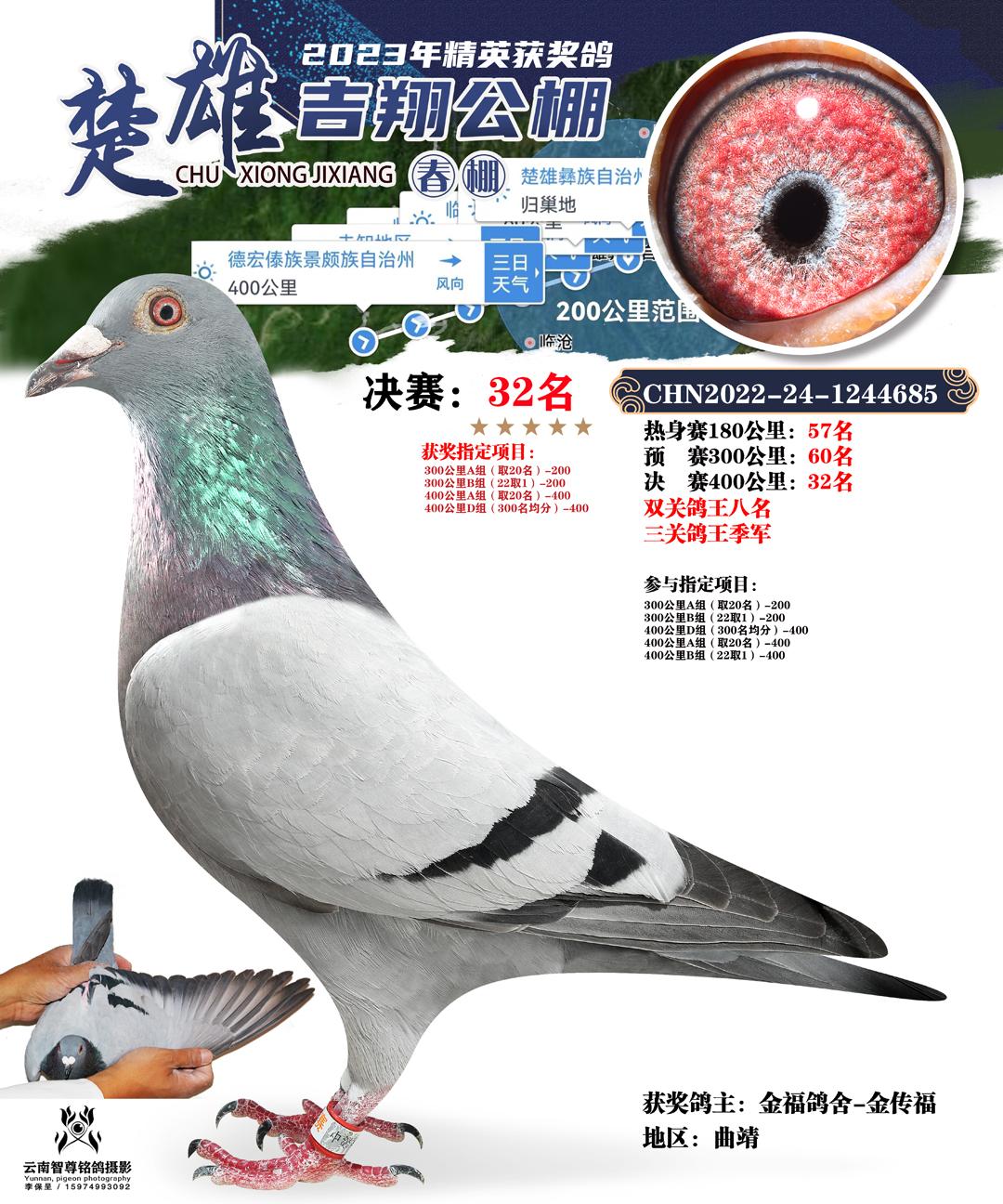 云南楚雄吉翔养殖有限公司(春棚) 2023年(第二届)400公里决赛获奖鸽