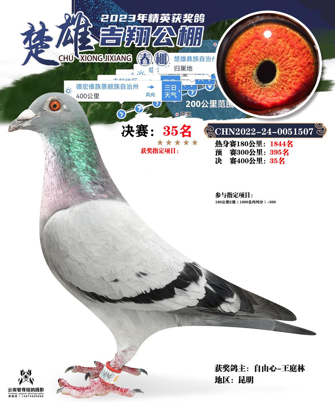 云南楚雄吉翔养殖有限公司(春棚) 2023年(第二届)400公里决赛获奖鸽
