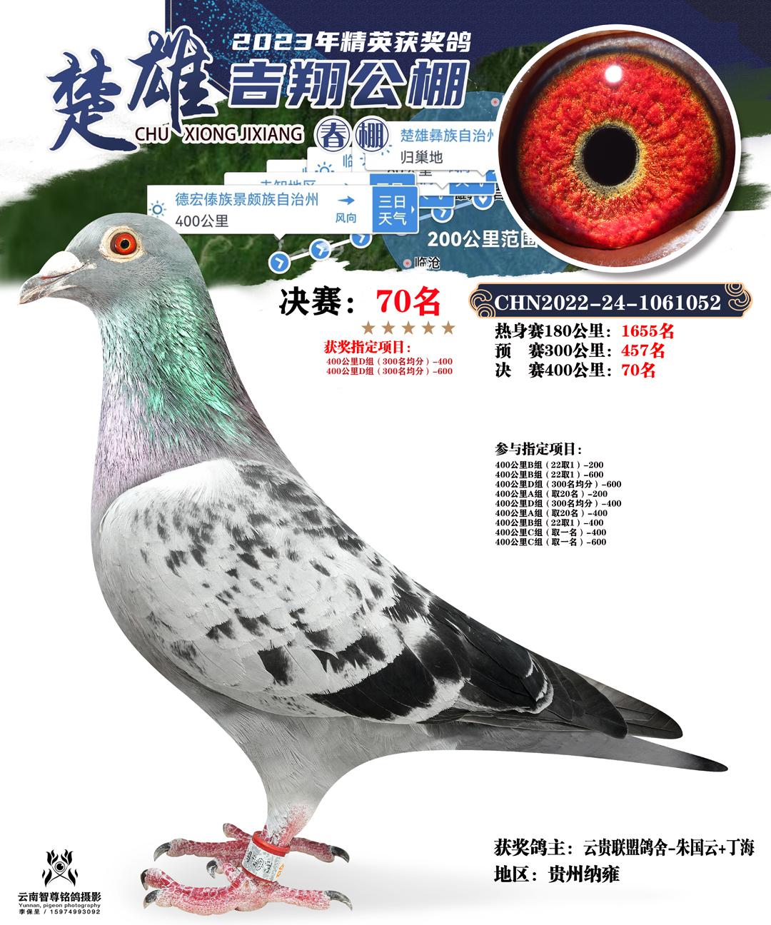 云南楚雄吉翔养殖有限公司(春棚) 2023年(第二届)400公里决赛获奖鸽