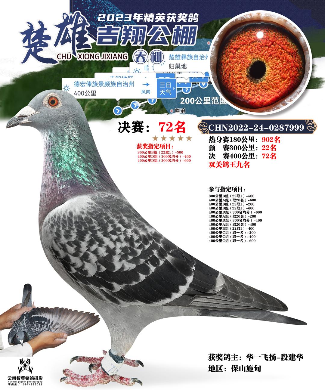 云南楚雄吉翔养殖有限公司(春棚) 2023年(第二届)400公里决赛获奖鸽