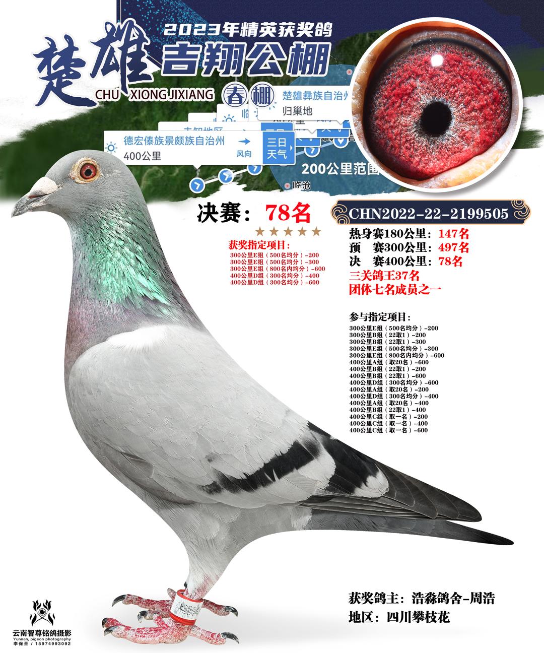 云南楚雄吉翔养殖有限公司(春棚) 2023年(第二届)400公里决赛获奖鸽