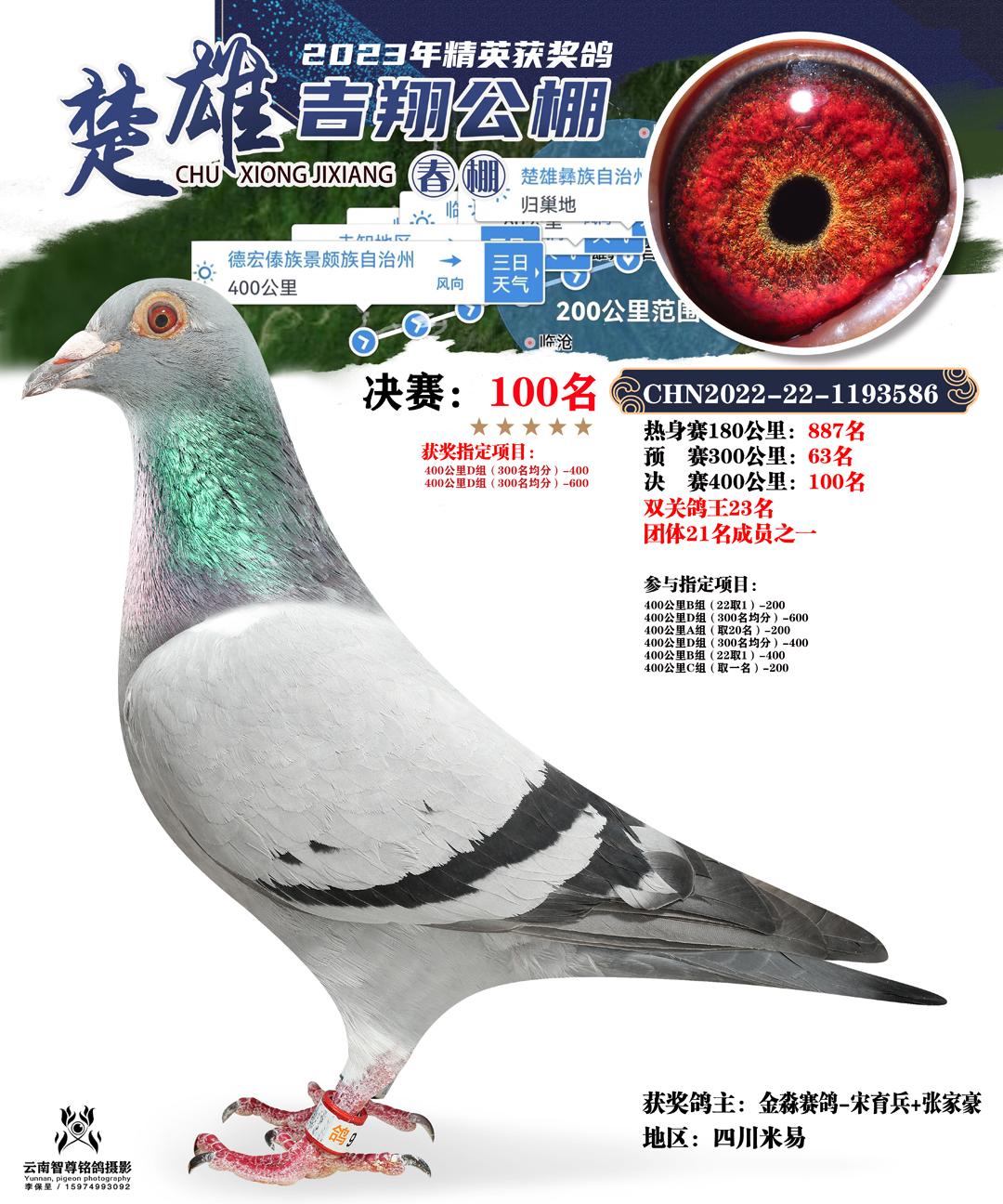 云南楚雄吉翔养殖有限公司(春棚) 2023年(第二届)400公里决赛获奖鸽