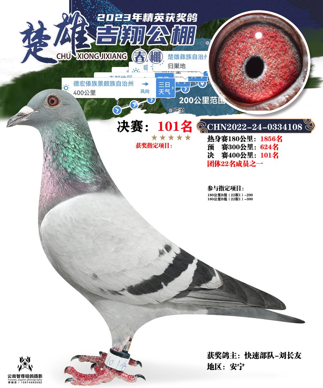 云南楚雄吉翔养殖有限公司(春棚) 2023年(第二届)400公里决赛获奖鸽