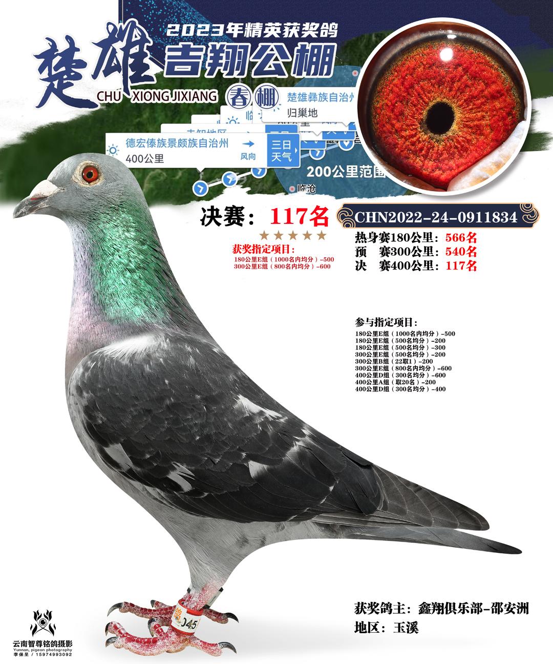 云南楚雄吉翔养殖有限公司(春棚) 2023年(第二届)400公里决赛获奖鸽